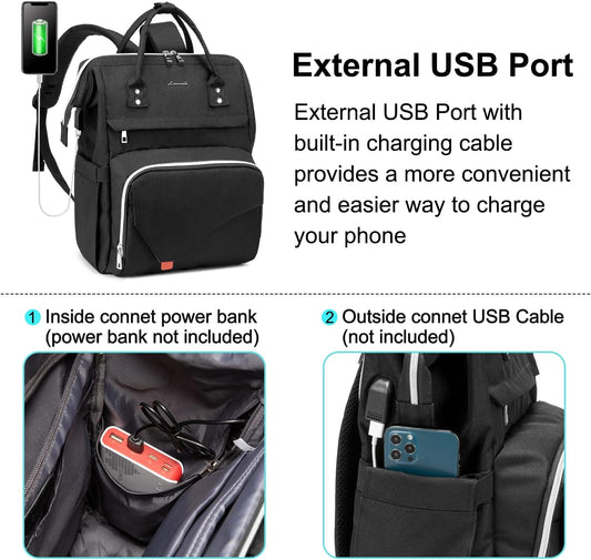 Laptop Backpack for Women, 17 Inch Work Travel Bag Computer Bags Teacher Doctor Nurse Backpack Purse, College Backpack (Upgraded), Black