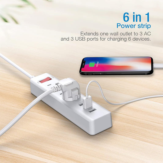 Power Strip 3 Outlets with 3 Fast Charging USB Ports, 5Ft Extension Cord with USB Ports (5V/2.4AX3) for Indoor,1625W/13A (1 PCS)