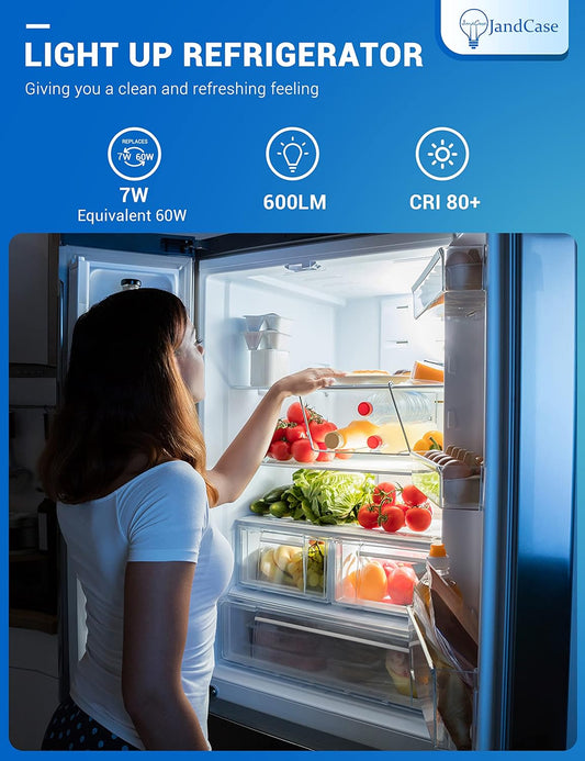 Refrigerator Light Bulbs, E26 Base A15 Appliance Bulbs 7W Equivalent 60W, Daylight White 5000K Fridge Light Bulbs, Non-Dimmable, UL Listed, 2 Pack
